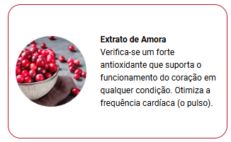 Os betabloqueadores de origem natural que vêm de Extrato de Amora, Extrato Seco de Hibisco e Ácido Fólico normalizam a alimentação do miocárdio e a frequência cardíaca.
